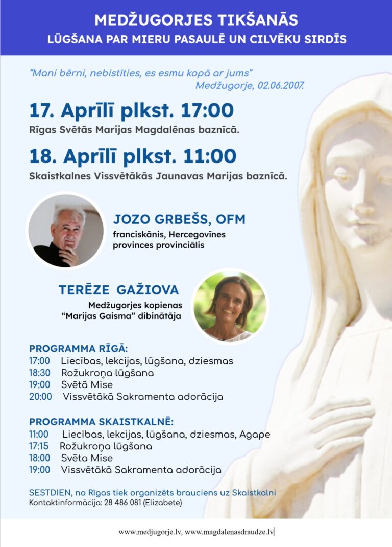 Svētdienu vakaros pēc Svētās Mises (19:30-21.00) Māras zālē un tiešsaistē.